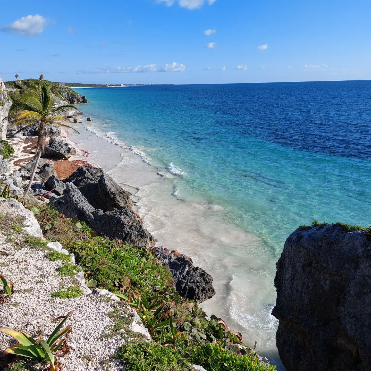 Tulumin mayakaupunki on kaunis ja kompakti kokonaisuus aivan Karibianmeren rannalla noin 60 km Playa del Carmenista etelään. Muureilla ympäröity mayakaupunki oli mayojen aikana tärkeä satama- ja kauppakaupunki. Näet kuninkaallisten palatsin, freskomaalauksen temppelin ja El Castillo – rakennuksen. Teemme reilun tunnin mittaisen kävelykierroksen arkeologisella alueella ja saat mahtavat lomakuvat Karibianmeren väreineen täältä. Kävelemme parkkipaikalta Tulumin sisäänkäynnille noin 800 m.